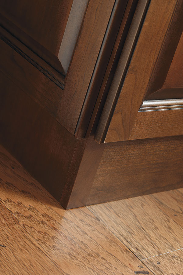 Modifying a cabinet for a Flush Toekick takes cabinetry to the floor for a sleek look or is used as a basis for decorative base moulding to attach to.