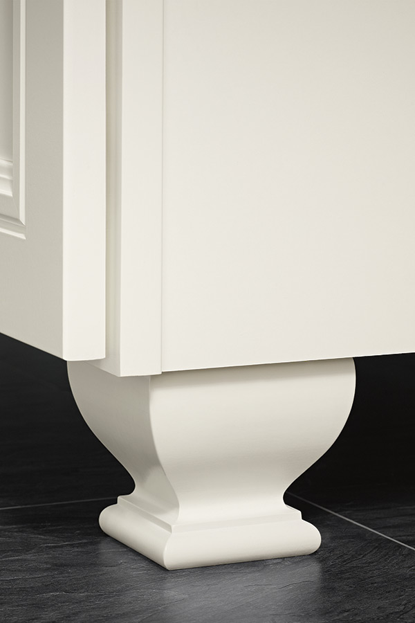 Decorative cabinet feet add a bit of pizzazz to a design and impart a furniture feel that complements a design theme.