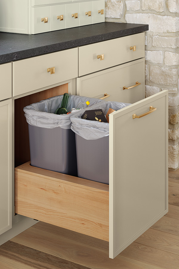 Make life simpler with two trash cans stowed away neatly in one cabinet.